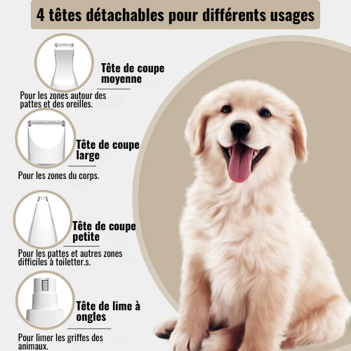 Polyvalence et performance : Que vous ayez un chien au pelage épais ou un chat aux griffes pointues, ce kit répond à tous vos besoins grâce à ses accessoires interchangeables.
